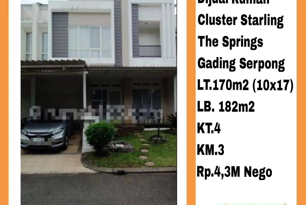 Dijual Cluster Starling The Springs Gading Serpong LT.170m2 (10×17)