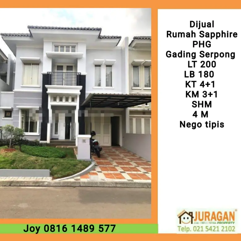 DIJUAL RUMAH SAFIR PHG GADING SERPONG