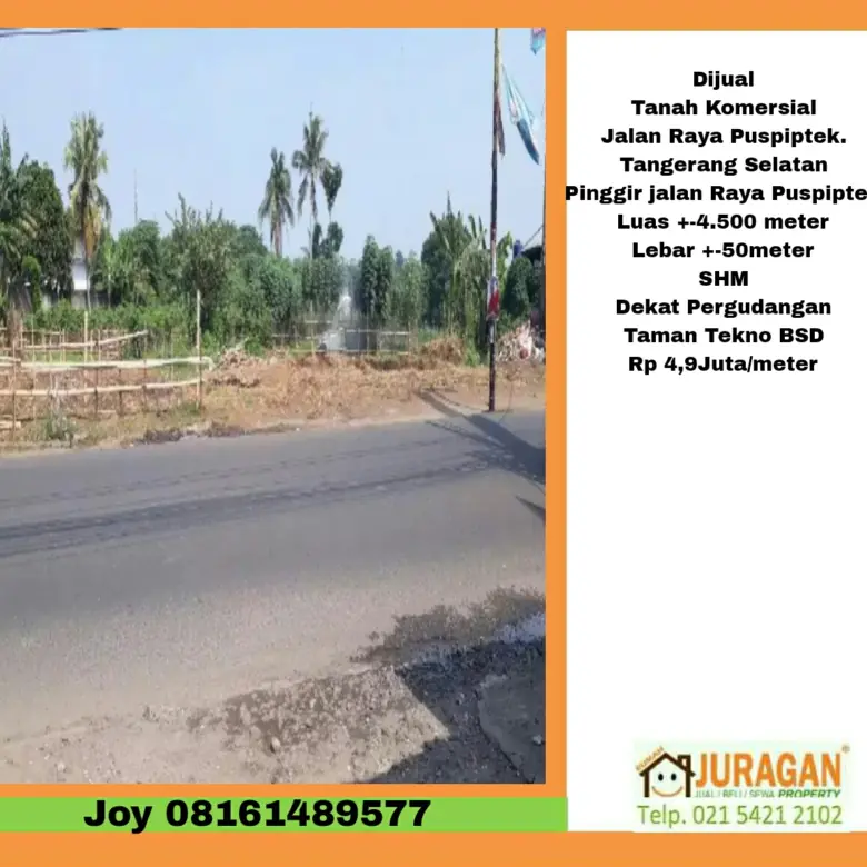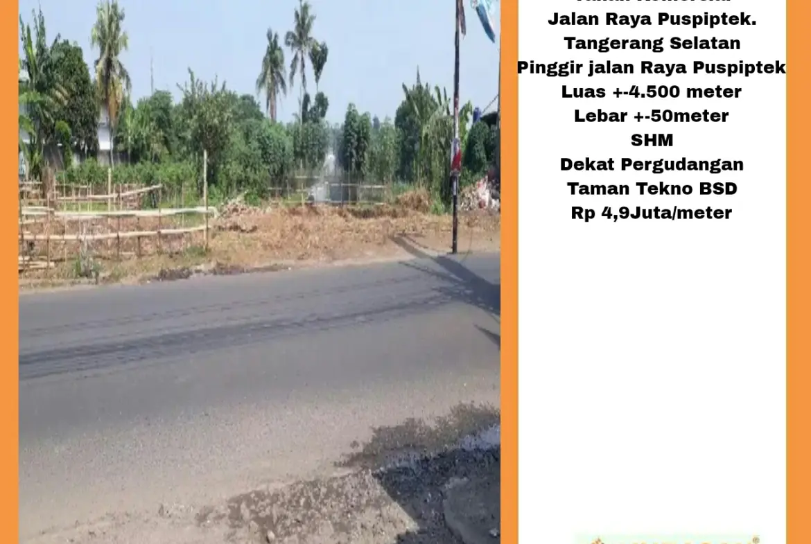 Dijual Tanah Jalan Raya Puspitek