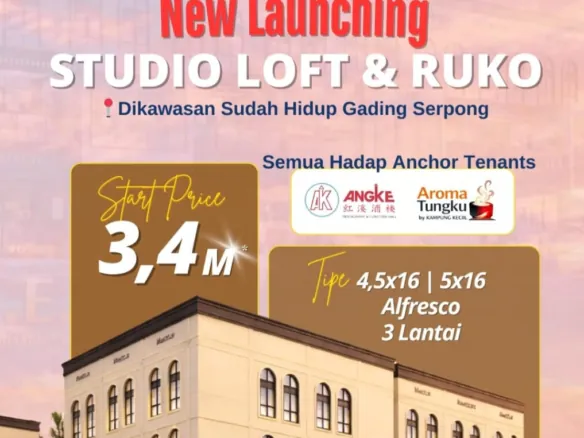 – Studio Loft : Rp. 5,8 M-an (only 12 Unit). Ukuran 5×17, 5×16, 6×17