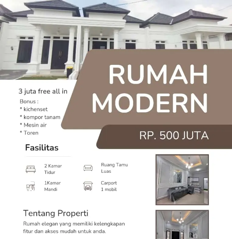 Harga mulai 500jutaan, 2 Kamar Tidur dan 1 Kamar Mandi cicilan cuma 2 jutaan